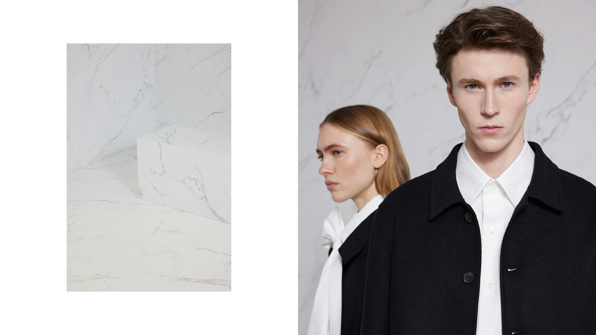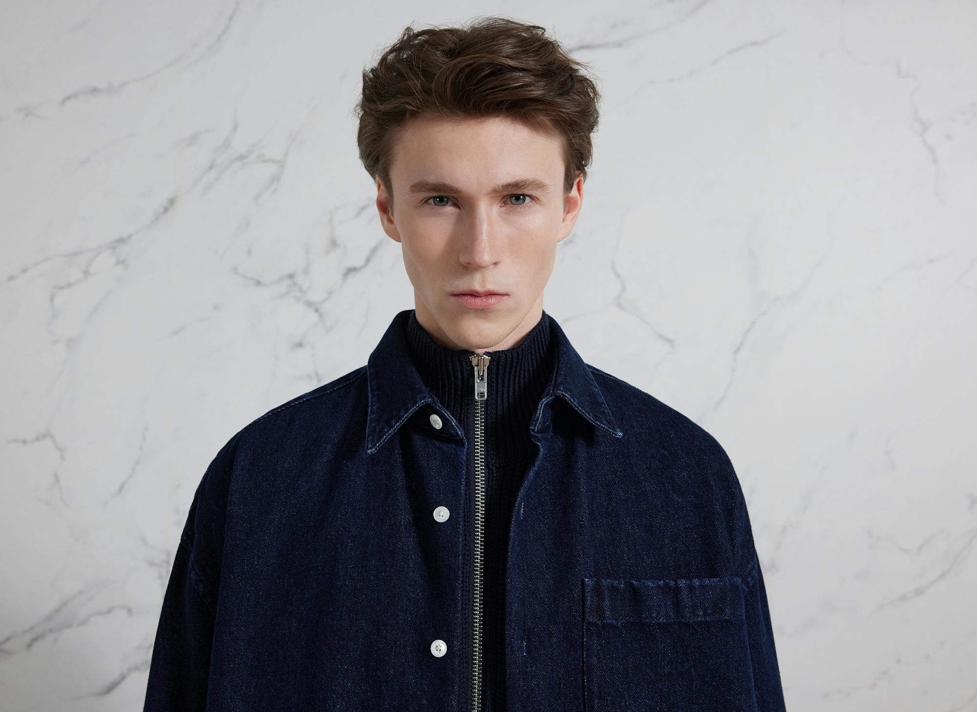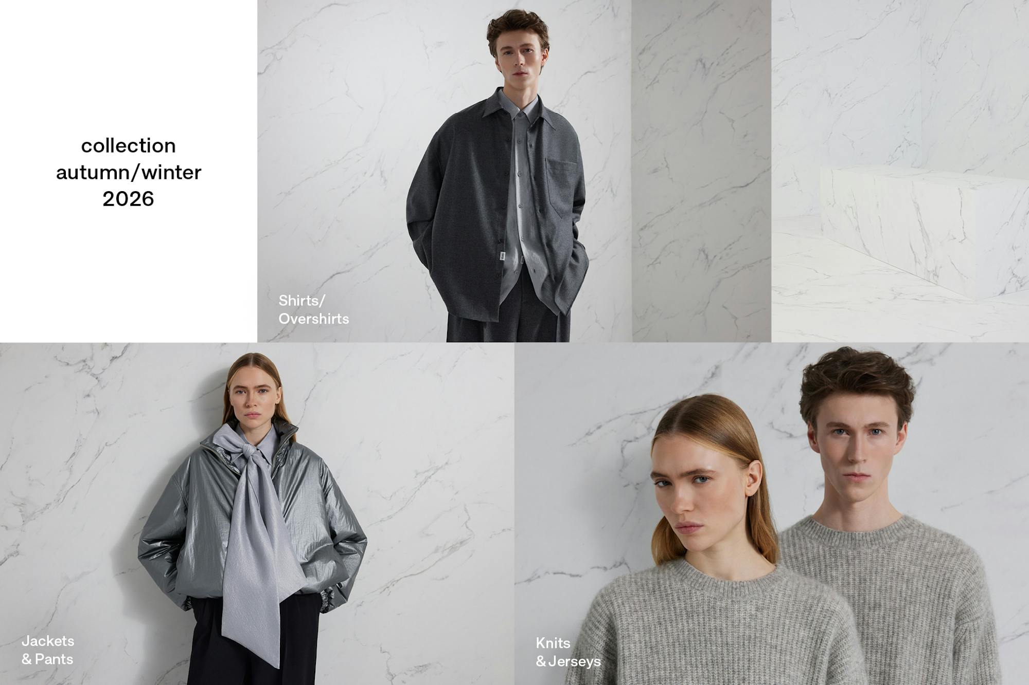 Sartoriale Codes treffen auf urbane Funktionalität und lassen neue Proportionen entstehen. Traditionelle Stoffe und klassische Typologien werden durch moderne Schnitte und technische Qualitäten aufgebrochen. So entsteht eine Neuinterpretation von Vertrautem, die Spannung erzeugt. Japanische Cordura-Qualitäten sorgen für Funktionalität und Langlebigkeit, während metallisches Nylon die visuelle Tiefe der Kollektion prägt. Flanell und haptische Wollmischungen sorgen für Tiefe und Struktur in den Silhouetten. Protagonisten sind Anoraks, Bomber, Mäntel sowie Blazer, geprägt von einer dekonstruierten und überschnittenen Linienführung.
