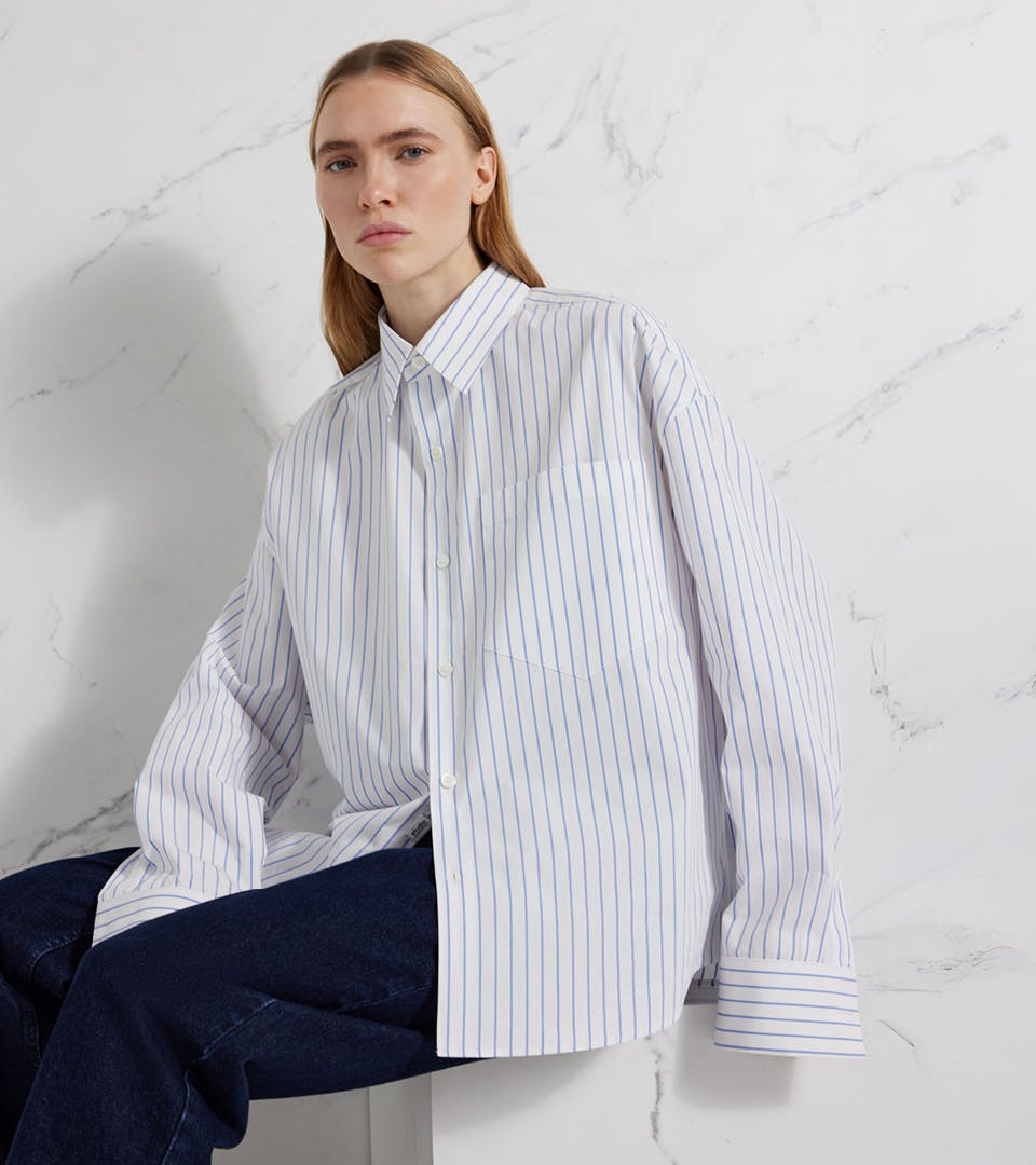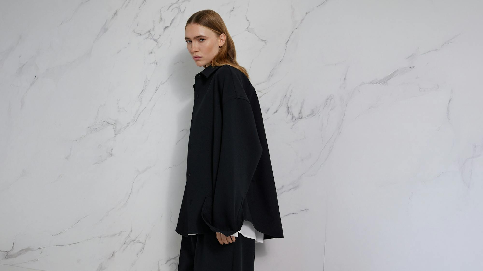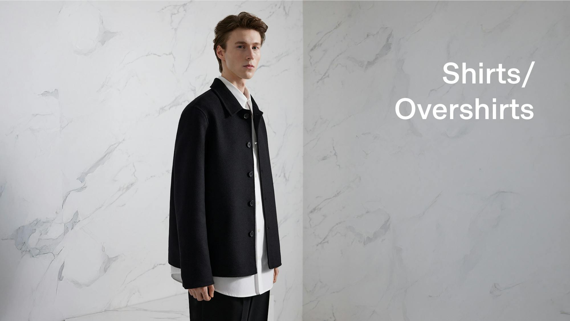 Relaxed, oversized, boxy – die Silhouetten brechen bewusst mit Konventionen. Fließende Stoffe treffen auf kompakte, technische Oberflächen, wodurch Haptik und Leichtigkeit in einen spannungsvollen Dialog treten. Grafische Streifen übersetzen klassische Codes in eine moderne, reduzierte Formsprache. Opulente Details setzen Akzente und treffen auf metallisches Nylon. Das Spektrum reicht von puristischen Unis bis hin zu subtilen Texturen. Mit ihrer klaren Formensprache und materialgetriebenen Ästhetik bilden die Shirt- und Overshirt-Typologien ein zentrales Fundament der Kollektion.